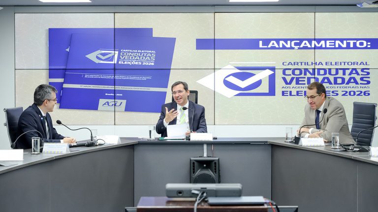 A “Cartilha Eleitoral: Condutas Vedadas aos Agentes Públicos Federais nas Eleições 2026” já está disponível para download no site da AGU, onde também é possível ouvir uma edição do podcast Arena AGU, que entrevistou a coordenadora da Câmara Nacional de Direito Eleitoral, Maria Helena Martins Rocha, para falar sobre o uso de bens públicos em campanhas eleitorais.