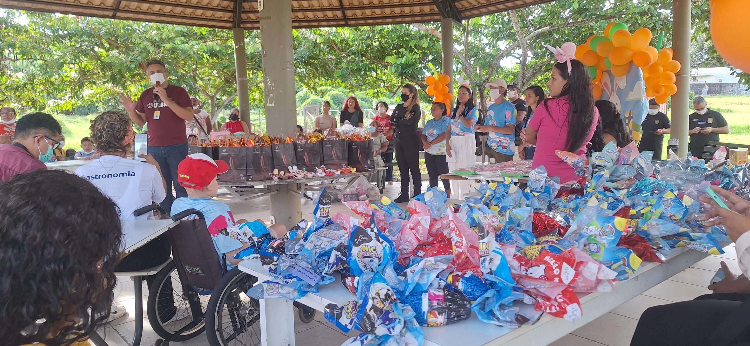 Pelo quarto ano, a Polícia Civil do estado do Pará também participou da comemoração de Páscoa. Nesta edição, além da doação dos ovos de chocolate, os policiais também trouxeram cestas básicas para ajudar as famílias.