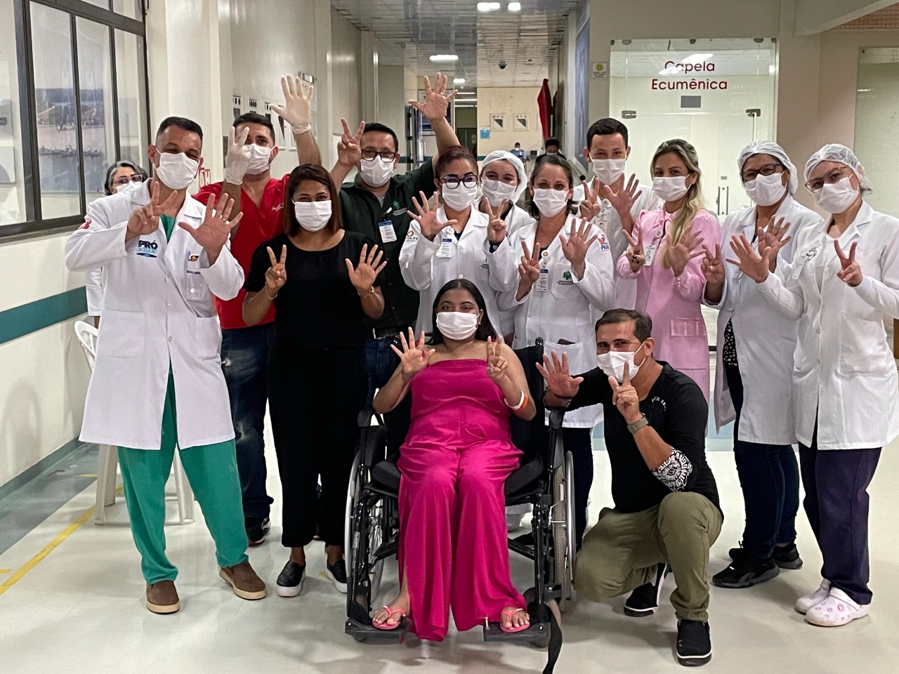 Após oito dias de internação, Adriana recebeu alta do hospital no final de março e retornou para casa. Na saída, recebeu uma linda homenagem dos profissionais da unidade, que acompanham a sua luta e a fizeram questão de organizar um corredor de palmas.