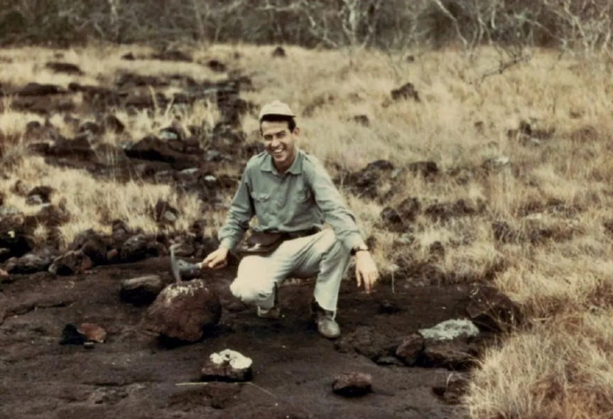 Em 1967, o geólogo Breno dos Santos batia o martelo em rocha em clareira no meio da floresta amazônica e descobriria a província mineral de Carajás. Foto: Coleção Breno Augusto dos Santos / Acervo Espaço Memória Vale