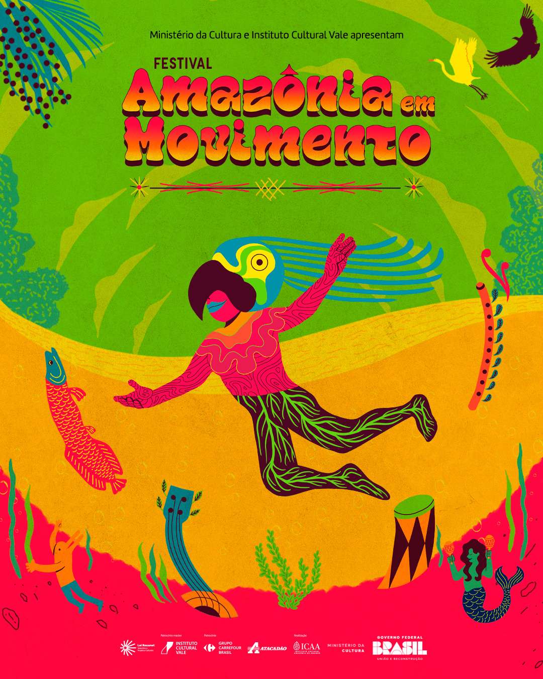 O Festival Amazônia em Movimento tem o patrocínio master do Instituto Cultural Vale, patrocínio do Grupo Carrefour Brasil e Atacadão, com realização do Instituto Cultural Amazônia do Amanhã (ICAA) através da Lei de Incentivo à Cultura – Rouanet. Para mais informações sobre inscrições e programação, acompanhe o Instagram oficial do projeto: @amazoniaemmovimento.