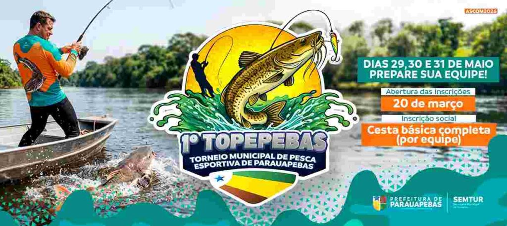 A Prefeitura Municipal de Parauapebas, por meio da Secretaria Municipal de Turismo (Semtur), dá um passo estratégico para consolidar o município como rota do turismo ecológico e esportivo na região Norte. Foi anunciado oficialmente o 1º TOPEPEBAS – Torneio Municipal de Pesca Esportiva de Parauapebas, que será realizado entre os dias 29 e 31 de maio, às margens do Rio Itacaiúnas.