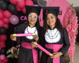 Entre as participantes, histórias de superação e aprendizado marcaram a cerimônia. Maria Zélia, de 56 anos, comemorou a oportunidade de realizar o curso de maquiagem ao lado da filha.
