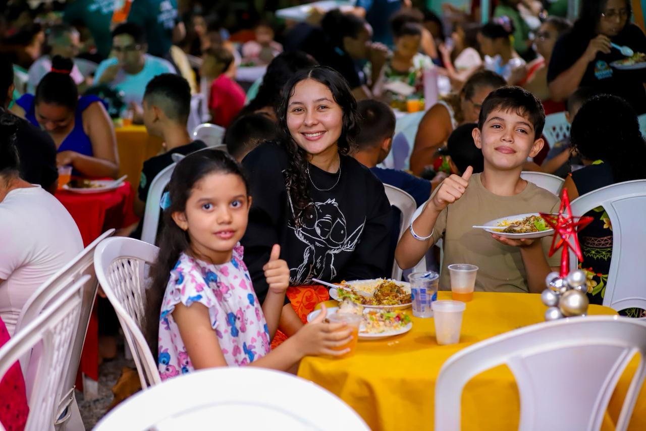 Um momento de confraternização, encontro com a família e celebração do espírito natalino marcou a última Ceia Natalina realizada na quarta-feira (09), no bairro Vale Canaã. A ação integra a campanha Canaã Natal da Família, promovida pela Prefeitura de Canaã dos Carajás, que leva o evento para diversos pontos da cidade.